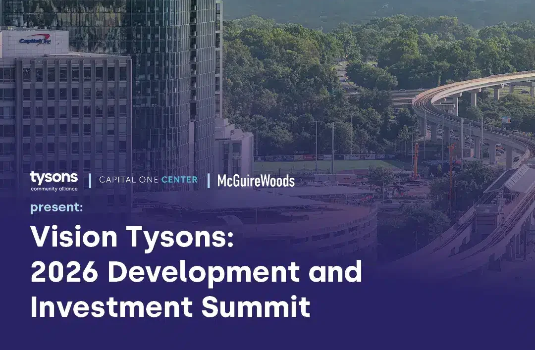 Tysons, VA—Tysons Community Alliance (TCA), in partnership with Capital One Center and McGuireWoods, will host the inaugural Vision Tysons 2026: Development and Investment Summit on Thursday, March 12, from 3:30 to 7 PM at The Vault at Capital One Hall (7750 Capital One Tower Rd.). The conference will bring together public- and private-sector leaders to examine development trends, investment conditions, and policy priorities driving Tysons’ future, aiming to foster collaboration among elected officials, developers, investors, and business leaders at a pivotal moment for growth in Fairfax County’s largest employment center.